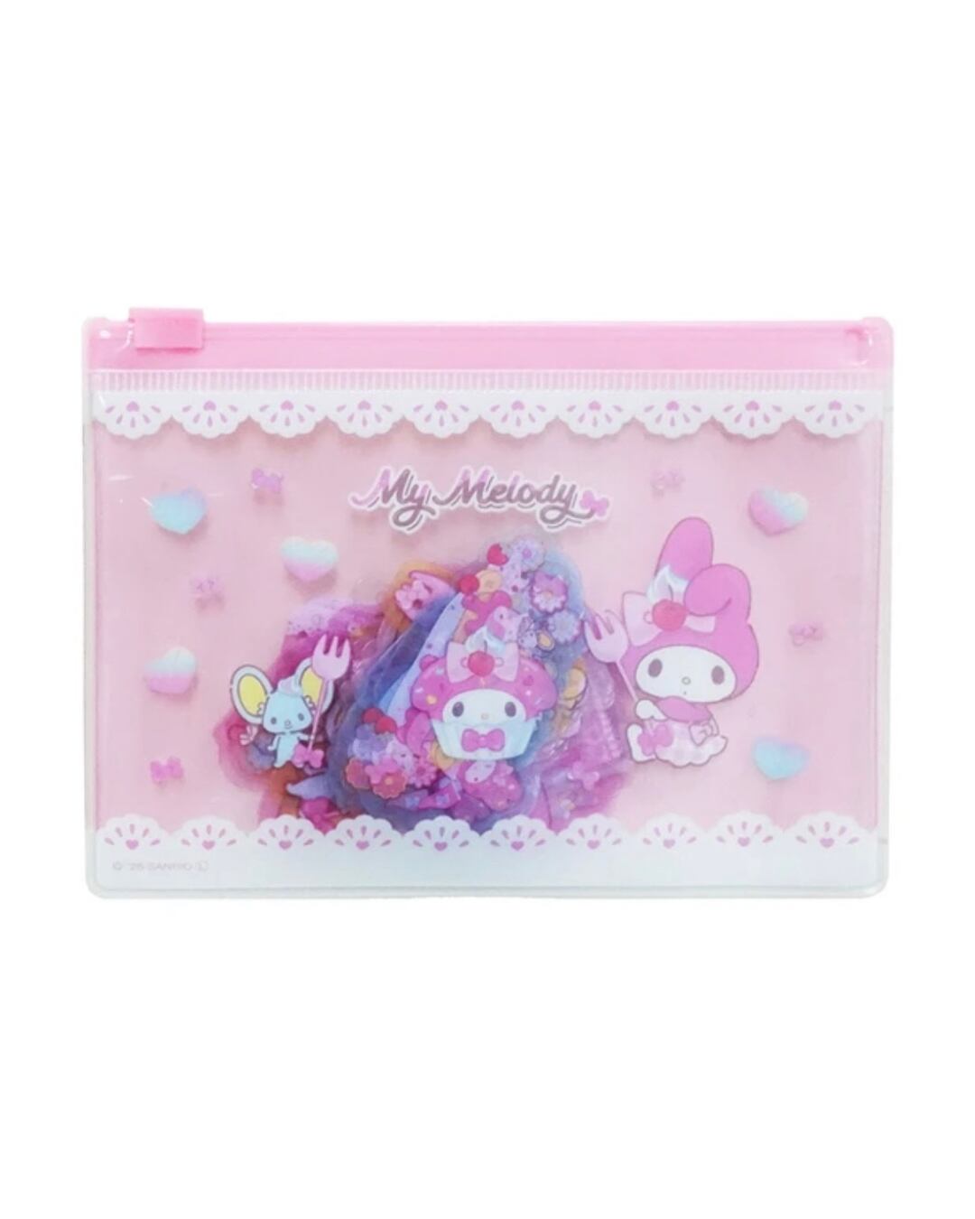 ポーチにクリア素材のステッカー入り♪